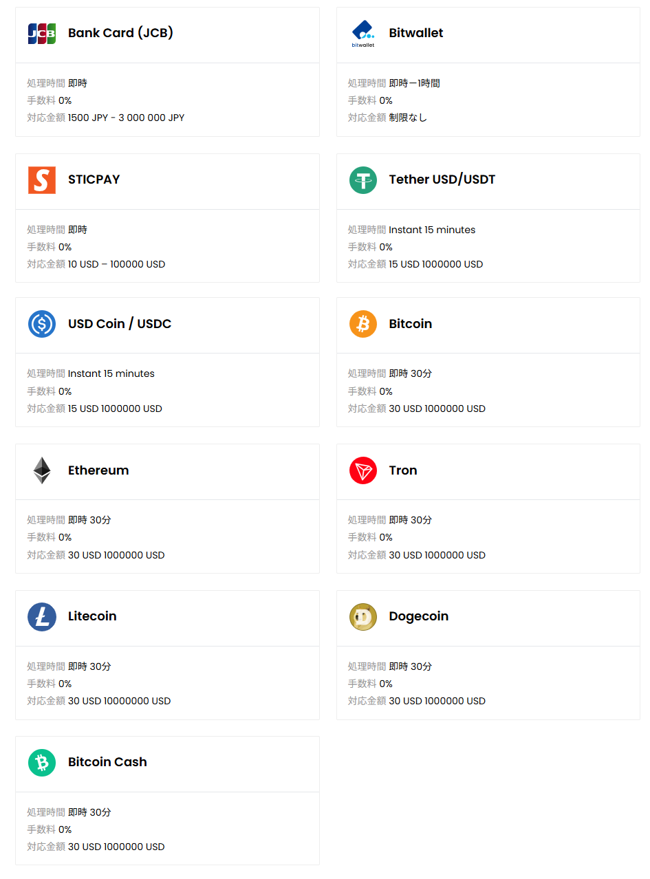 入金・出金は24時間365日ご利用可能。取引が即時に処理されない場合でも、24時間以内には完了。ただし、ご利用の銀行や決済サービスによっては処理に追加の時間がかかる場合がある。