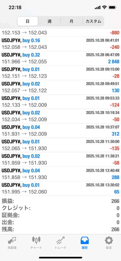 10/28は最終損益はプラス266円でした~TT