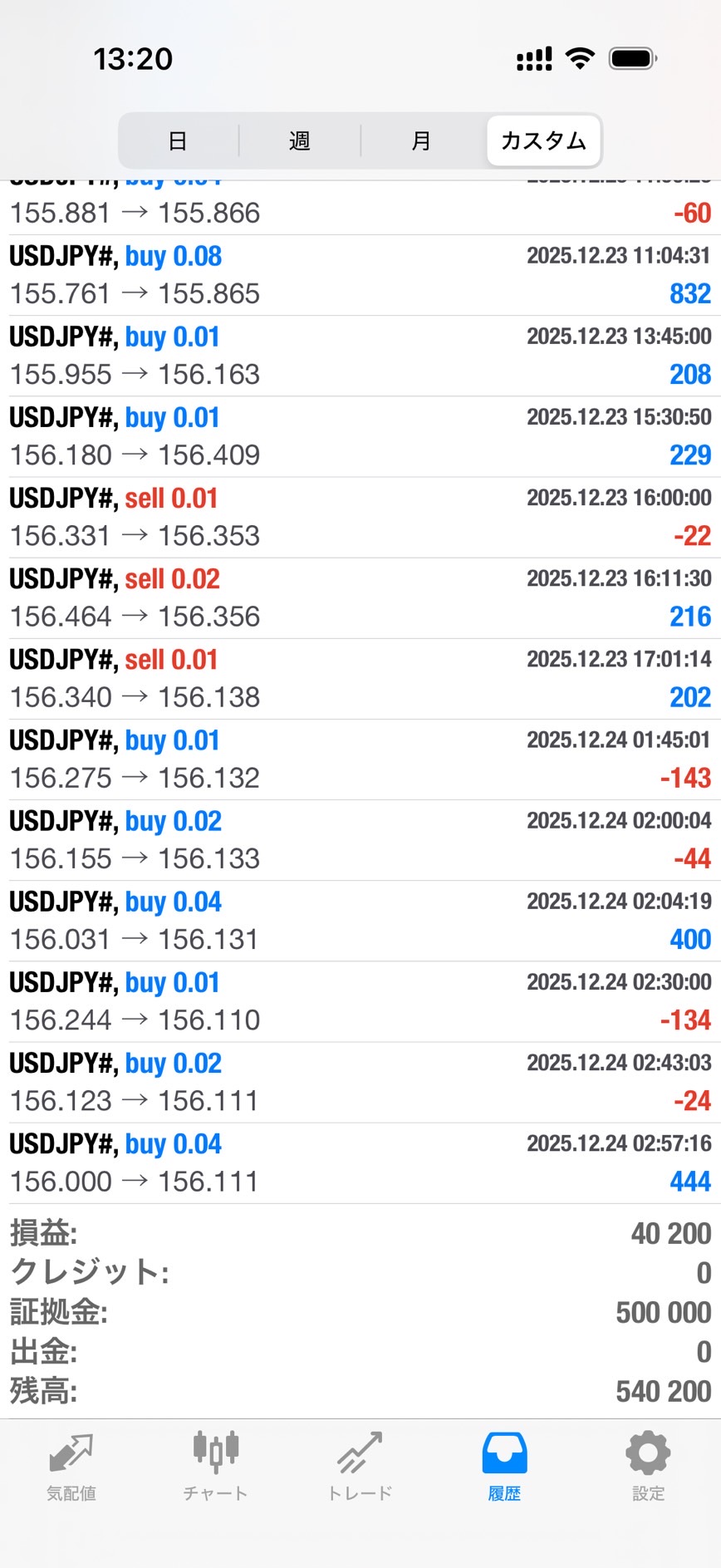 XM取引履歴 XMトレーディング XMトレード (2025-12-24中間集計) 2025.12.24 Post Share Line 久しぶりの投稿!徐々に増えてますよ~ 今日で利益が40200円になりました!将来の年金以上には大きくしたい! クリスマスの両日でドル円がどう動くか!? おんちゃん FX好きの初心者トレーダー。コツコツ派のおんちゃんが、EAでどこまで資産を育てられるかをリアルに記録。旅行や温泉も大好き。 記事のタイトルとURLをコピーする XMトレード (2025-12-10中間集計) 前の記事 XMトレード (2026-01-13中間集計) 次の記事
